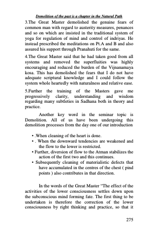 3.The Great Master demolished the genuine fears of common man with regard to austerity measures, penances and so on which are insisted in the traditional system of yoga for regulation of mind and control of indriyas. He instead prescribed the meditations on Pt.A and B and also assured his support through Pranahuti for the same.