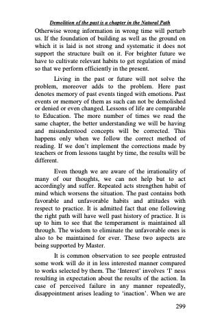 Otherwise wrong information in wrong time will perturb us. If the foundation of building as well as the ground on which it is laid is not strong and systematic it does not support the structure built on it. For brighter future we have to cultivate relevant habits to get regulation of mind so that we perform efficiently in the present.