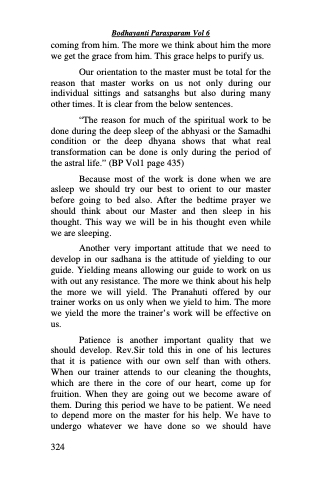 Our orientation to the master must be total for the reason that master works on us not only during our individual sittings and satsanghs but also during many other times. It is clear from the below sentences.