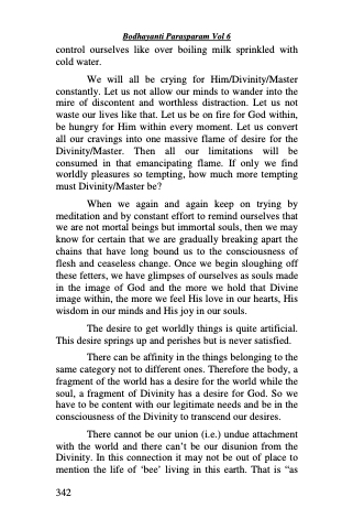 There cannot be our union (i.e.) undue attachment with the world and there can’t be our disunion from the Divinity. In this connection it may not be out of place to mention the life of ‘bee’ living in this earth. That is “as