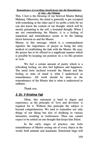 This, I feel is the blessing of our beloved Master Babuji Maharaj. Otherwise, the mind is generally is pre occupied with something or the other and if we probe a little bit we can also know the content of our thought, which will be mostly pertaining to the self, a bounded thought. When I am not remembering the Master, it is a feeling of separation and remembrance seems to be the linking
