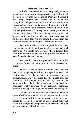 To arrive at this condition is possible only if we practice systematically and meditate having our real goal before us. We should have a guide who is himself free from this doership feeling and living in the condition of sahaj Samadhi discussed above.