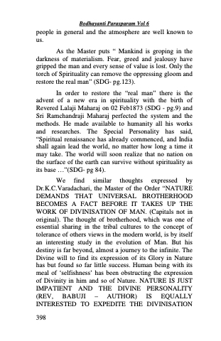 In order to restore the “real man” there is the advent of a new era in spirituality with the birth of Revered Lalaji Maharaj on 02 Feb1873 (SDG - pg.9) and Sri Ramchandraji Maharaj perfected the system and the methods. He made available to humanity all his works and researches. The Special Personality has said, “Spiritual renaissance has already commenced, and India shall again lead the world, no matter how long a time it may take. The world will soon realize that no nation on the surface of the earth can survive without spirituality as its base ...”(SDG- pg 84).