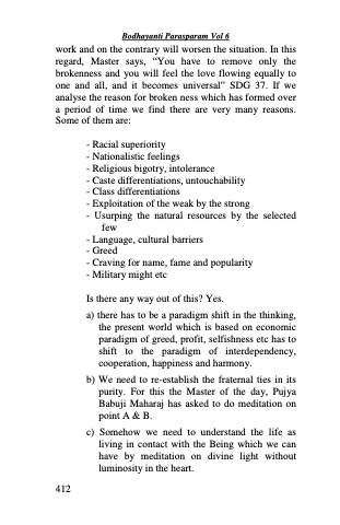 work and on the contrary will worsen the situation. In this regard, Master says, “You have to remove only the brokenness and you will feel the love flowing equally to one and all, and it becomes universal” SDG 37. If we analyse the reason for broken ness which has formed over a period of time we find there are very many reasons. Some of them are:
