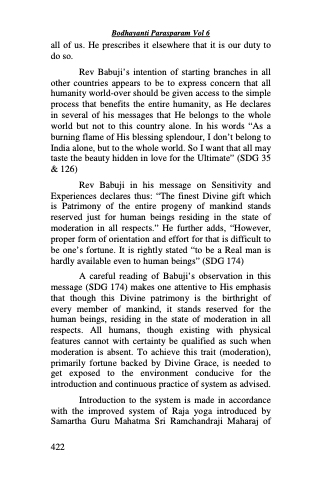 A careful reading of Babuji’s observation in this message (SDG 174) makes one attentive to His emphasis that though this Divine patrimony is the birthright of every member of mankind, it stands reserved for the human beings, residing in the state of moderation in all respects. All humans, though existing with physical features cannot with certainty be qualified as such when moderation is absent. To achieve this trait (moderation), primarily fortune backed by Divine Grace, is needed to get exposed to the environment conducive for the introduction and continuous practice of system as advised.