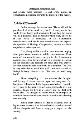 Everything in this world is consciousness ranging from gross consciousness to subtle consciousness. When each of our consciousness merges in Sri Ramchandra consciousness then the world will be a paradise. i.e. when all our thoughts and feelings are pious and only express love for others then the world will be a paradise. The Goal is very noble but to reach that goal is not an easy task as Babuji Maharaj himself says, “We need to work very hard”.