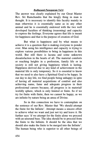 So in this connection we have to contemplate on the sentence of our Rev. Master that ‘We should attempt the finite for the Infinite’. Attempt means a sincere effort to achieve what we want and just not try and leave it. He further says ‘if we attempt for the finite alone we proceed with an unsound base. The idea should be to proceed from the finite to the Infinite. It should be the idea that we should also make the finite to be merged into the Infinite’. The human being who is superior to all other beings of