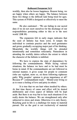 worldly, then also he looses happiness. Reason being, we are happy when others are happy. The balance between these two things is the difficult task being tried for ages. This system of PAM is designed so effectively to meet the same.