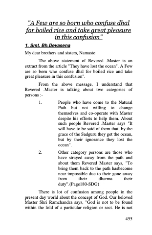 The above statement of Revered .Master is an extract from the article "They have lost the ocean". A Few are so born who confuse dhal for boiled rice and take great pleasure in this confusion".