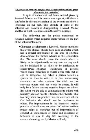 The following are the points mentioned by Revered. Master which requires improvement on the part of the abhyasis/Trainers:-