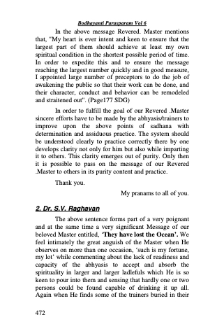 In order to fulfill the goal of our Revered .Master sincere efforts have to be made by the abhyasis/trainers to improve upon the above points of sadhana with determination and assiduous practice. The system should be understood clearly to practice correctly there by one develops clarity not only for him but also while imparting it to others. This clarity emerges out of purity. Only then it is possible to pass on the message of our Revered .Master to others in its purity content and practice.