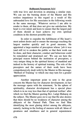 with true love and devotion in attaining a similar state. We can see the burning desire of the Master and His restless impatience in this regard as a result of His unbounded love for His associates in the following words in the same message, ‘Whatever service I am able to render to them, all that does not give me satisfaction. My heart is ever intent and keen to ensure that the largest part of them should at least achieve my own spiritual condition in the shortest possible time.’