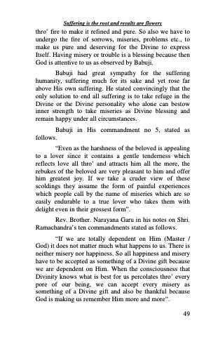 thro’ fire to make it refined and pure. So also we have to undergo the fire of sorrows, miseries, problems etc., to make us pure and deserving for the Divine to express Itself. Having misery or trouble is a blessing because then God is attentive to us as observed by Babuji.