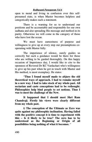 The imperience of silence, surely guides us correctly but such a guidance would be there for those who are willing to be guided thoroughly. On this happy occasion of Imperience day, I would like to cite to the openness of Revered Dr KC Vardachari who's willingness to give up his past when he got in touch with Master and His method, is most exemplary. He states: