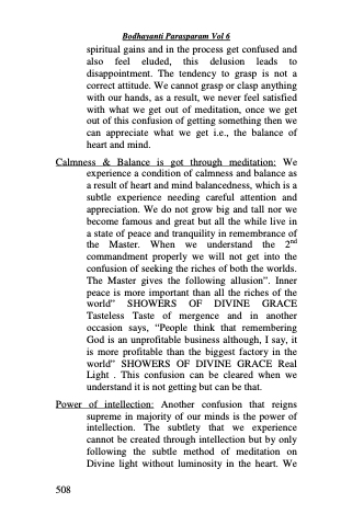 spiritual gains and in the process get confused and also feel eluded, this delusion leads to disappointment. The tendency to grasp is not a correct attitude. We cannot grasp or clasp anything with our hands, as a result, we never feel satisfied with what we get out of meditation, once we get out of this confusion of getting something then we can appreciate what we get i.e., the balance of heart and mind.