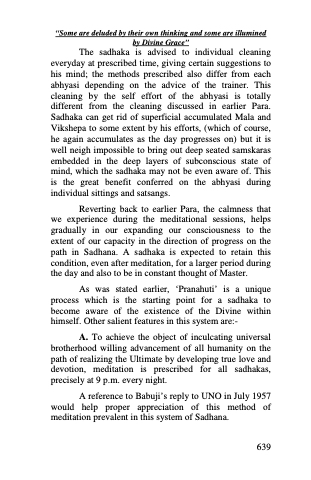 A reference to Babuji’s reply to UNO in July 1957 would help proper appreciation of this method of meditation prevalent in this system of Sadhana.