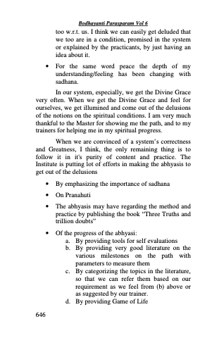 • The abhyasis may have regarding the method and practice by publishing the book “Three Truths and trillion doubts”