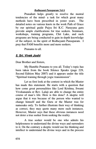 Pranahuti helps greatly to resolve the mental tendencies of the mind- a task for which great many methods have been prescribed in yester years. The detailed notes on various knots in the work Path of Grace by our spiritual guide Pujya Sri K.C. Narayana garu provide ample clarifications for true seekers. Seminars, workshops, training programs, Chit Lake, and such programs are being conducted to gain in-depth knowledge of the subject, in the spirit of Bodhayanti Parasparam. I pray that PAM benefits more and more seekers.