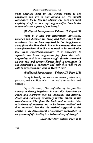 want anything from us, but simply wants to see happiness and joy in and around us. We should consciously try to feel the Master who does not want anything else from us except happiness/joy, both in the inner and outer aspects of our being.’