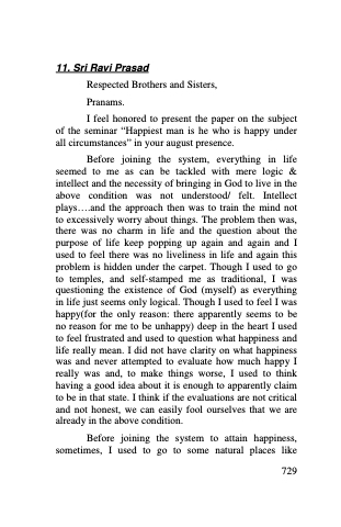 I feel honored to present the paper on the subject of the seminar “Happiest man is he who is happy under all circumstances” in your august presence.