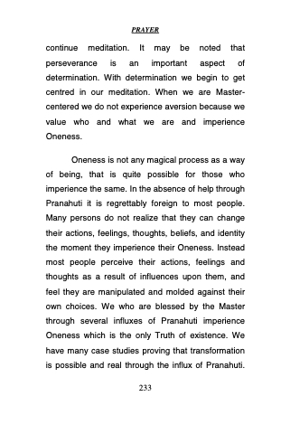 continue meditation. It may be noted that perseverance is an important aspect of determination. With determination we begin to get centred in our meditation. When we are Master- centered we do not experience aversion because we value who and what we are and imperience Oneness.