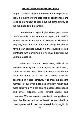 proper. It is here most of the times the mind plays its trick. It is not therefore said that all experiences are to be taken without question but the extra activity of the mind needs to be curbed.
