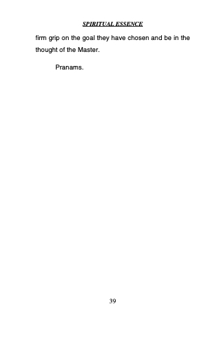 SPIRITUAL ESSENCE firm grip on the goal they have chosen and be in the thought of the Master. Pranams. 39