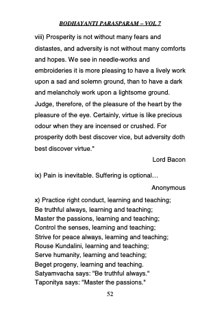 viii) Prosperity is not without many fears and distastes, and adversity is not without many comforts and hopes. We see in needle-works and embroideries it is more pleasing to have a lively work upon a sad and solemn ground, than to have a dark and melancholy work upon a lightsome ground. Judge, therefore, of the pleasure of the heart by the pleasure of the eye. Certainly, virtue is like precious odour when they are incensed or crushed. For prosperity doth best discover vice, but adversity doth best discover virtue."