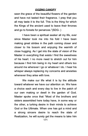 seen the grace of the beautiful flowers of the garden and have not tasted their fragrance. I pray that you all may taste it to the full. This is the thing for which the Kings of the ancient used to leave their thrones and go to forests for penances.”(SDG- )