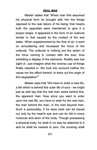 Master says that “We have to enter a new life, a life which is behind this outer life of ours - we might just as well say that the real man exists behind this, the apparent man. Now since you want to enter upon the real life, you have to seek for the real man, the man behind the man, or the man beyond man. Such a personality, if he does exist can be traced out only by the heart's eye and can be felt in every molecule and atom of the body. Though possessing a physical body, he shall in no way be attached to it and he shall be nearest to zero. His covering shall