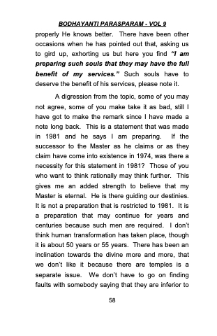 A digression from the topic, some of you may not agree, some of you make take it as bad, still I have got to make the remark since I have made a note long back. This is a statement that was made in 1981 and he says I am preparing. If the successor to the Master as he claims or as they claim have come into existence in 1974, was there a necessity for this statement in 1981? Those of you who want to think rationally may think further. This gives me an added strength to believe that my Master is eternal. He is there guiding our destinies. It is not a preparation that is restricted to 1981. It is a preparation that may continue for years and centuries because such men are required. I don’t think human transformation has taken place, though it is about 50 years or 55 years. There has been an inclination towards the divine more and more, that we don’t like it because there are temples is a separate issue. We don’t have to go on finding faults with somebody saying that they are inferior to