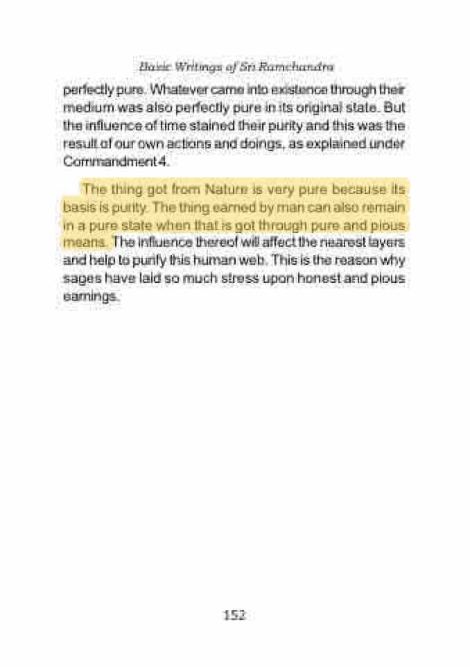 The thing got from Nature is very pure because its basis is purity. The thing earned by man can also remain in a pure state when that is got through pure and pious means. The influence thereof will affect the nearest layers and help to purify this human web. This is the reason why sages have laid so much stress upon honest and pious earnings.