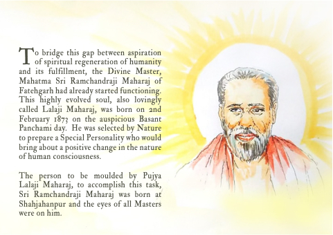 To bridge this gap between aspiration of spiritual regeneration of humanity and its fulfillment, the Divine Master, Mahatma Sri Ramchandraji Maharaj of Fatehgarh had already started functioning. This highly evolved soul, also lovingly called Lalaji Maharaj, was born on 2nd February 1873 on the auspicious Basant Panchami day. He was selected by Nature to prepare a Special Personality who would bring about a positive change in the nature of human consciousness.