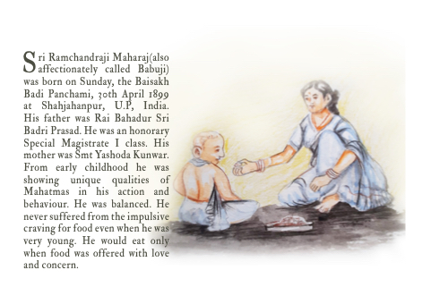 Badi Panchami, 30th April 1899 at Shahjahanpur, U.P, India. His father was Rai Bahadur Sri Badri Prasad. He was an honorary Special Magistrate I class. His mother was Smt Yashoda Kunwar. From early childhood he was showing unique qualities of Mahatmas in his action and behaviour. He was balanced. He never suffered from the impulsive craving for food even when he was very young. He would eat only when food was offered with love and concern.