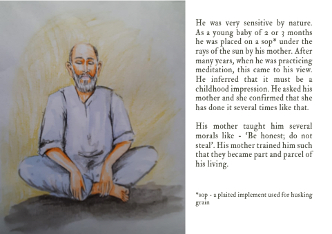 He was very sensitive by nature. As a young baby of 2 or 3 months he was placed on a sop* under the rays of the sun by his mother. After many years, when he was practicing meditation, this came to his view. He inferred that it must be a childhood impression. He asked his mother and she confirmed that she has done it several times like that.