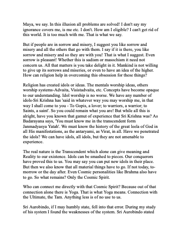 Sri Aurobindo, if I may humbly state, fell into that error. During my study of his system I found the weaknesses of the system. Sri Aurobindo stated