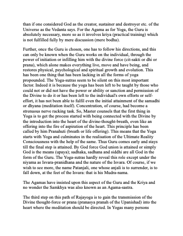 The Agamas have insisted upon this aspect of the Guru and the Kriya and no wonder the Samkhya was also known as an Agama-sastra.