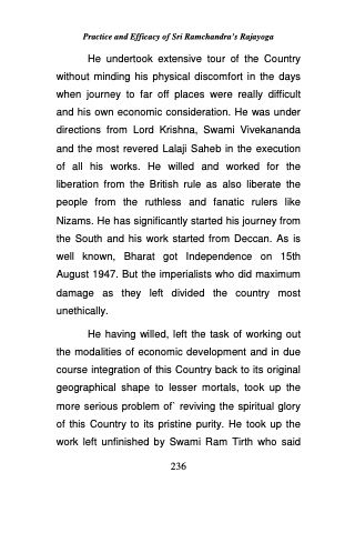 He undertook extensive tour of the Country without minding his physical discomfort in the days when journey to far off places were really difficult and his own economic consideration. He was under directions from Lord Krishna, Swami Vivekananda and the most revered Lalaji Saheb in the execution of all his works. He willed and worked for the liberation from the British rule as also liberate the people from the ruthless and fanatic rulers like Nizams. He has significantly started his journey from the South and his work started from Deccan. As is well known, Bharat got Independence on 15th August 1947. But the imperialists who did maximum damage as they left divided the country most unethically.