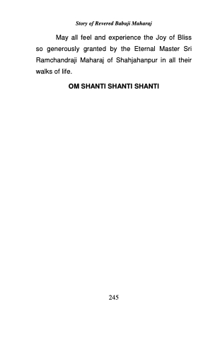Story of Revered Babuji Maharaj May all feel and experience the Joy of Bliss so generously granted by the Eternal Master Sri Ramchandraji Maharaj of Shahjahanpur in all their walks of life. OM SHANTI SHANTI SHANTI 245