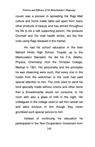 He had his school education in the then Mahant Hindu High School, Tirupati, up to the Matriculation Standard. He did his F.A. (Maths, Physics, Chemistry) from the Christian College, Madras in 1921. His personality and the principles he was observing were such, that every one in the hostel from the watchman to the cook had paid special attention to him. The cook used to send his food specially made without onions and other items that a Srivaishnavite would not consume, to his room with also a glass of milk in the night. His colleagues in the college used to call him caveat cat and were envious of him though they never grumbled such special service to him.