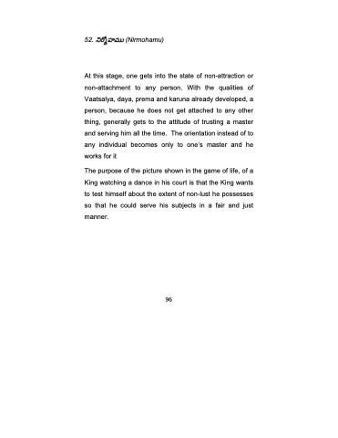 At this stage, one gets into the state of non-attraction or non-attachment to any person. With the qualities of Vaatsalya, daya, prema and karuna already developed, a person, because he does not get attached to any other thing, generally gets to the attitude of trusting a master and serving him all the time. The orientation instead of to any individual becomes only to one’s master and he works for it