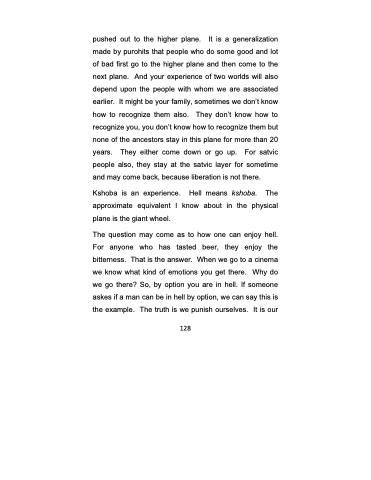 pushed out to the higher plane. It is a generalization made by purohits that people who do some good and lot of bad first go to the higher plane and then come to the next plane. And your experience of two worlds will also depend upon the people with whom we are associated earlier. It might be your family, sometimes we don’t know how to recognize them also. They don’t know how to recognize you, you don’t know how to recognize them but none of the ancestors stay in this plane for more than 20 years. They either come down or go up. For satvic people also, they stay at the satvic layer for sometime and may come back, because liberation is not there.