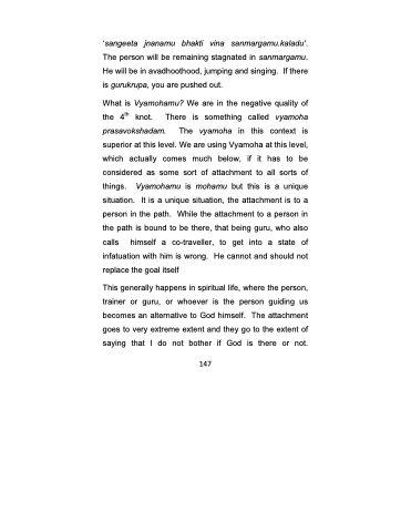 What is Vyamohamu? We are in the negative quality of the 4th knot. There is something called vyamoha prasavokshadam. The vyamoha in this context is superior at this level. We are using Vyamoha at this level, which actually comes much below, if it has to be considered as some sort of attachment to all sorts of things. Vyamohamu is mohamu but this is a unique situation. It is a unique situation, the attachment is to a person in the path. While the attachment to a person in the path is bound to be there, that being guru, who also calls himself a co-traveller, to get into a state of infatuation with him is wrong. He cannot and should not replace the goal itself