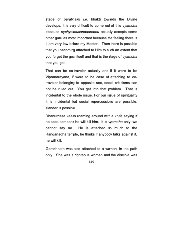 stage of parabhakti i.e. bhakti towards the Divine develops, it is very difficult to come out of this vyamoha because nychyaanusandaanamu actually accepts some other guru as most important because the feeling there is ‘I am very low before my Master’. Then there is possible that you becoming attached to Him to such an extent that you forget the goal itself and that is the stage of vyamoha that you get.