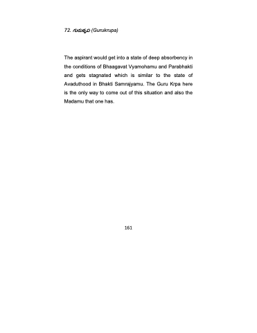 The aspirant would get into a state of deep absorbency in the conditions of Bhaagavat Vyamohamu and Parabhakti and gets stagnated which is similar to the state of Avaduthood in Bhakti Samrajyamu. The Guru Krpa here is the only way to come out of this situation and also the Madamu that one has.