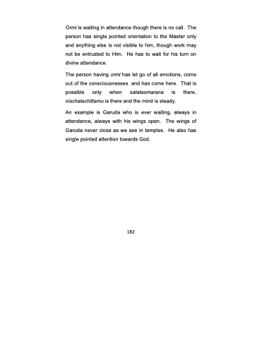 An example is Garuda who is ever waiting, always in attendance, always with his wings open. The wings of Garuda never close as we see in temples. He also has single pointed attention towards God.
