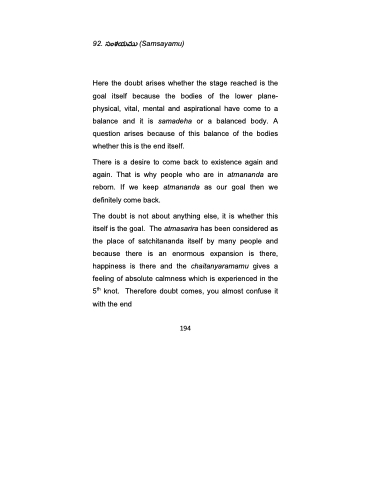 Here the doubt arises whether the stage reached is the goal itself because the bodies of the lower plane- physical, vital, mental and aspirational have come to a balance and it is samadeha or a balanced body. A question arises because of this balance of the bodies whether this is the end itself.