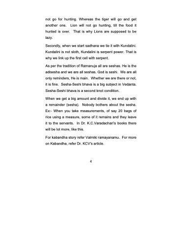 When we get a big amount and divide it, we end up with a remainder (sesha). Nobody bothers about the sesha. Ex:- When you take measurements, of say 20 bags of rice using a measure, some of it remains and they leave it to the servants. In Dr. K.C.Varadachari’s books there will be lot more, like this.