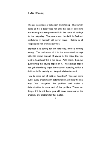 The ant is a stage of collection and storing. The human being as he is today has not only the trait of collecting and storing but also promoted it in the name of savings for the rainy day. The person who has faith in God and confidence in himself will never hoard. Saints in all religions did not promote savings.