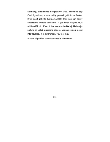 Definitely, amalamu is the quality of God. When we say God, if you keep a personality, you will get into confusion. If we don’t get into that personality, then you can easily understand what is said here. If you keep His picture, it will be difficult. Even if that were to be Babuji Maharaj’s picture or Lalaji Maharaj’s picture, you are going to get into troubles. It is awareness, you feel that.